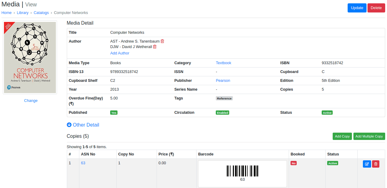 Library Management system helps to manage and display books, documents, study material, and collaterals across library cupboards, shelves by books titles, authors, subjects, publishers, suppliers, purchases, and tags.